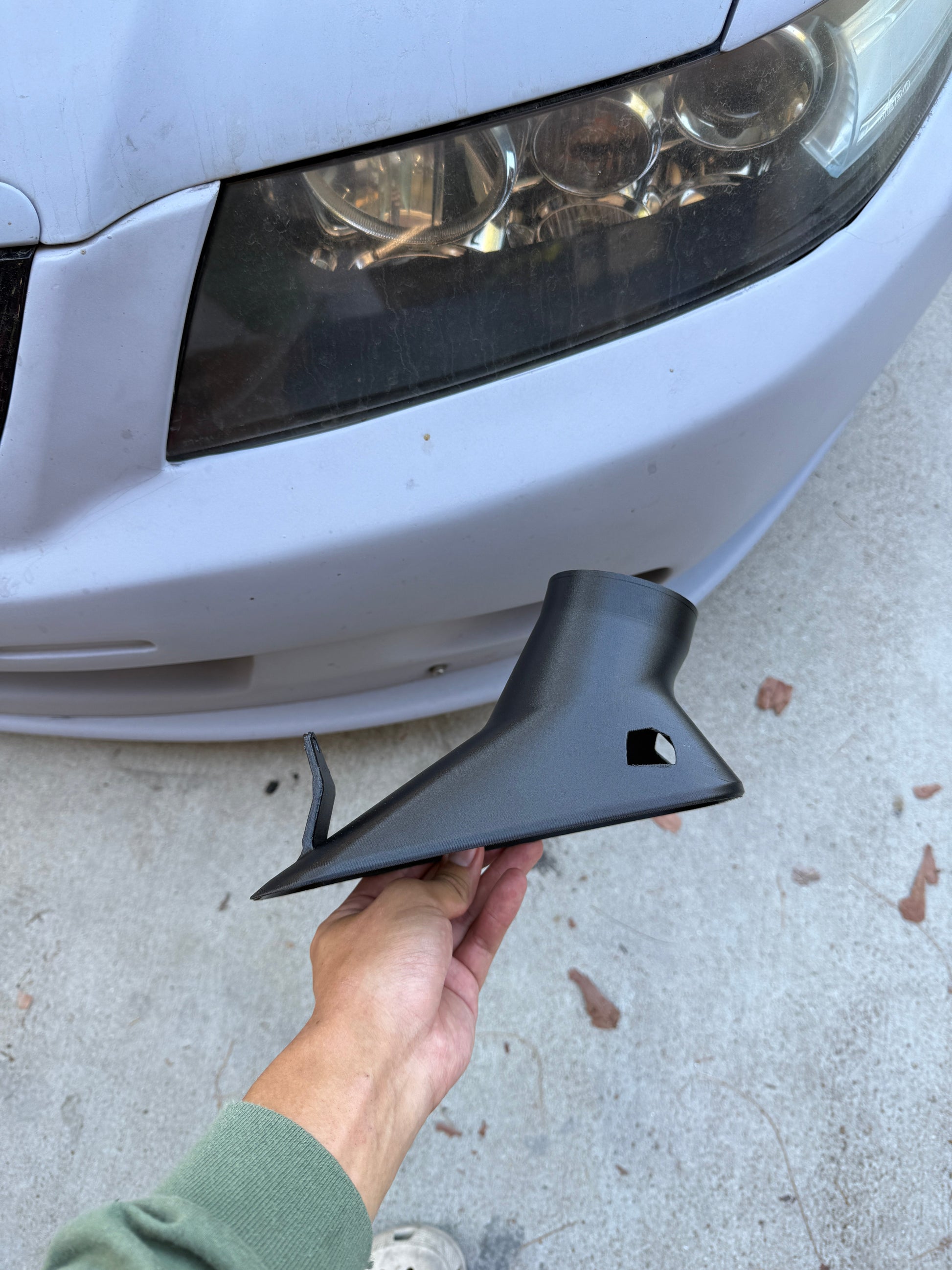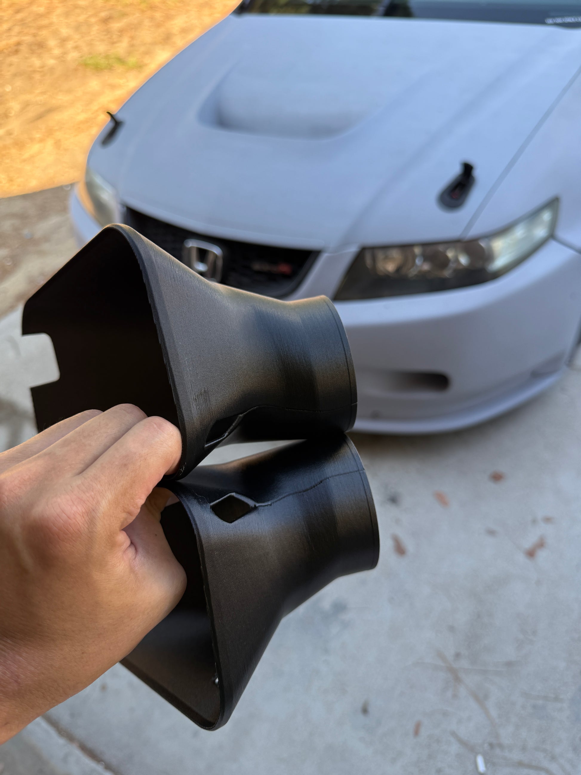 Each duct is 3D printed from ASA-CF (Acrylonitrile Styrene Acrylate reinforced with carbon fiber), providing superior rigidity, UV resistance, and high heat tolerance—perfect for both street and track environments.
